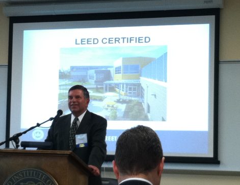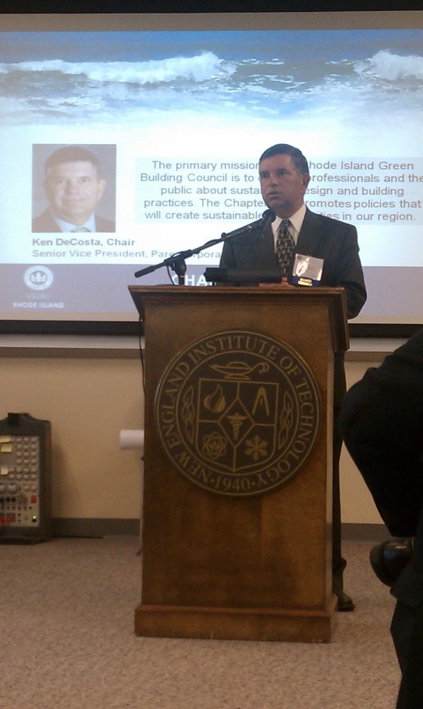 PARE employees supported Ken DeCosta, Senior Vice President of Pare and the RI Green Building Council’s Chairman of the Board at the 2012 Annual Meeting. The meeting was held on March 21st at the New England Institute of Technology (NEIT) in East Greenwich. Along with an update on the year’s activities and future direction of RIGBC in 2013, the meeting featured John Kelly as the keynote speaker. Mr. Kelly discussed the Meeting Street LEED Certified building and the I-195 Redevelopment District and some of the ideas surrounding it. Members were able to comment and ask questions and give their input on the redevelopment district. Networking and tours of the NEIT facility followed the keynote speaker.