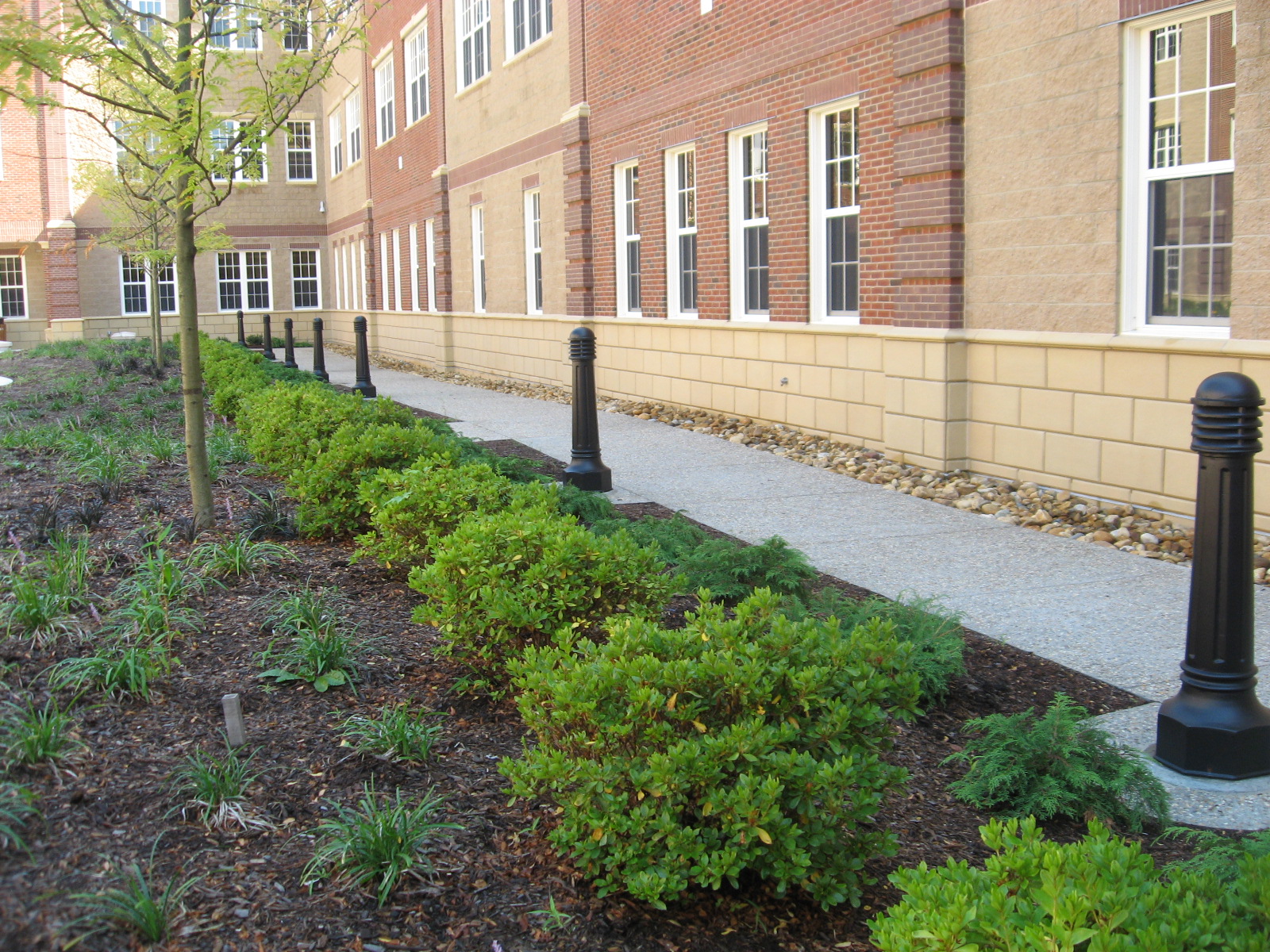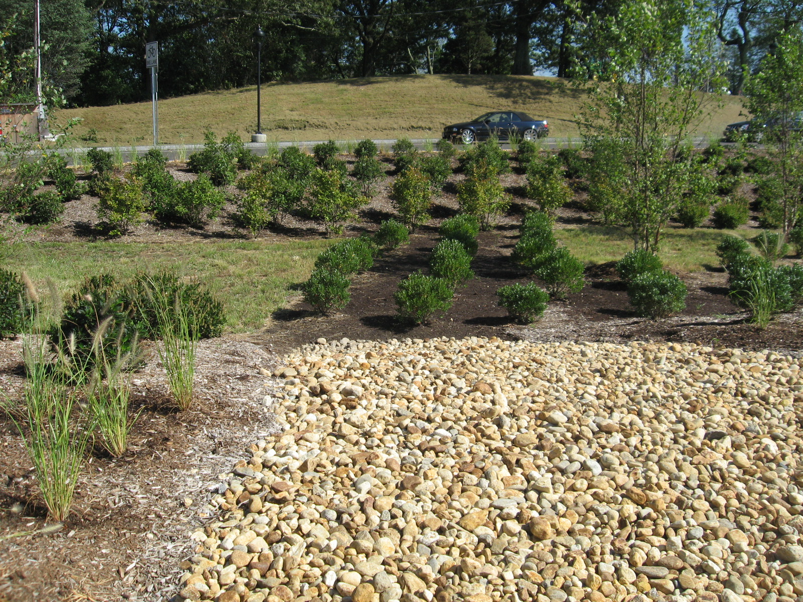 During our walk around the site, we were able to see many of the sustainable features and best management practices incorporated into the landscape design, stormwater management system, and athletic facilities. The photos below highlight some of these features on the site.