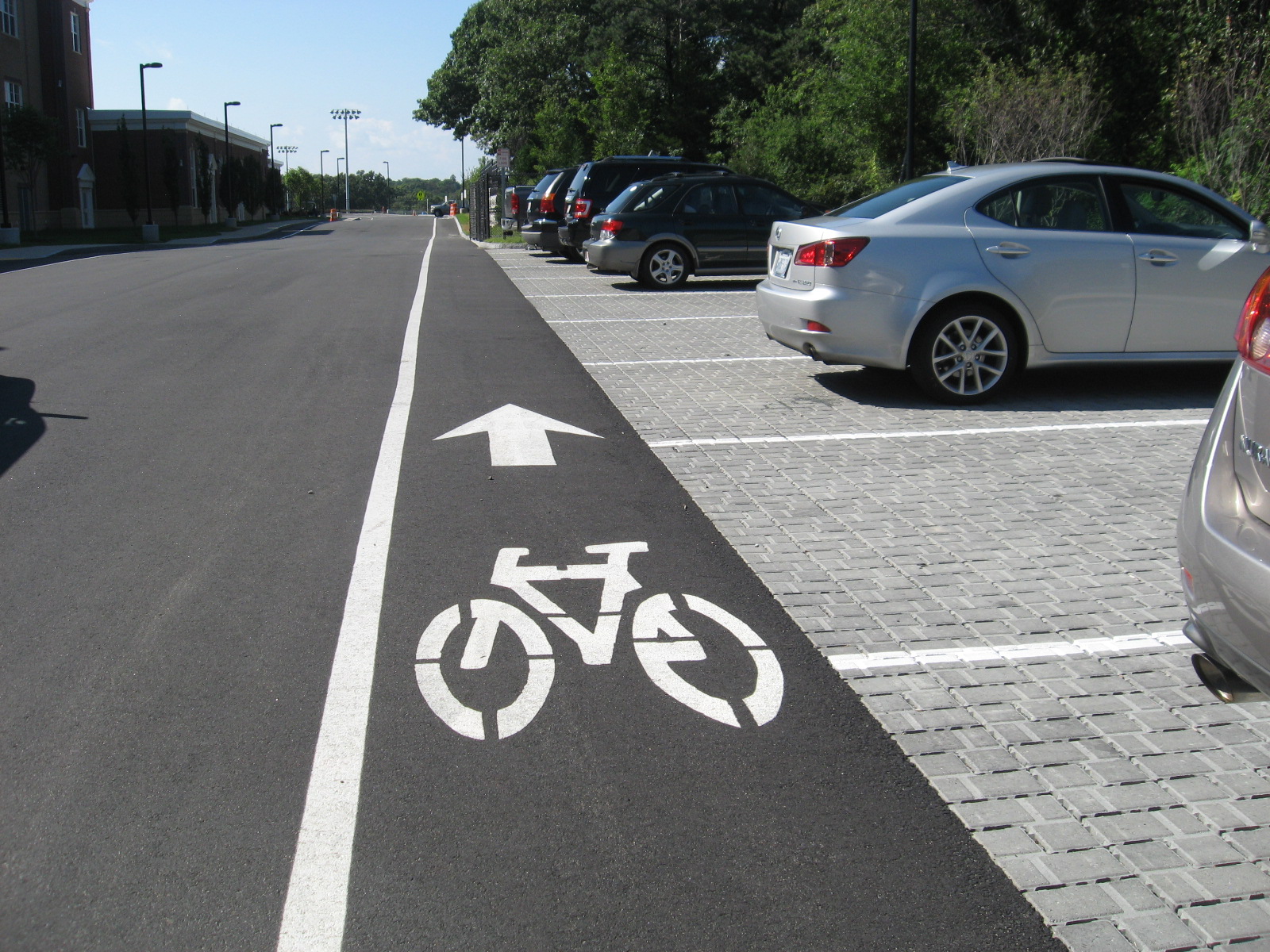 Interlocking blocks provide a permeable surface for parking areas around the school. Bike lanes around the campus encourage cycling to school.