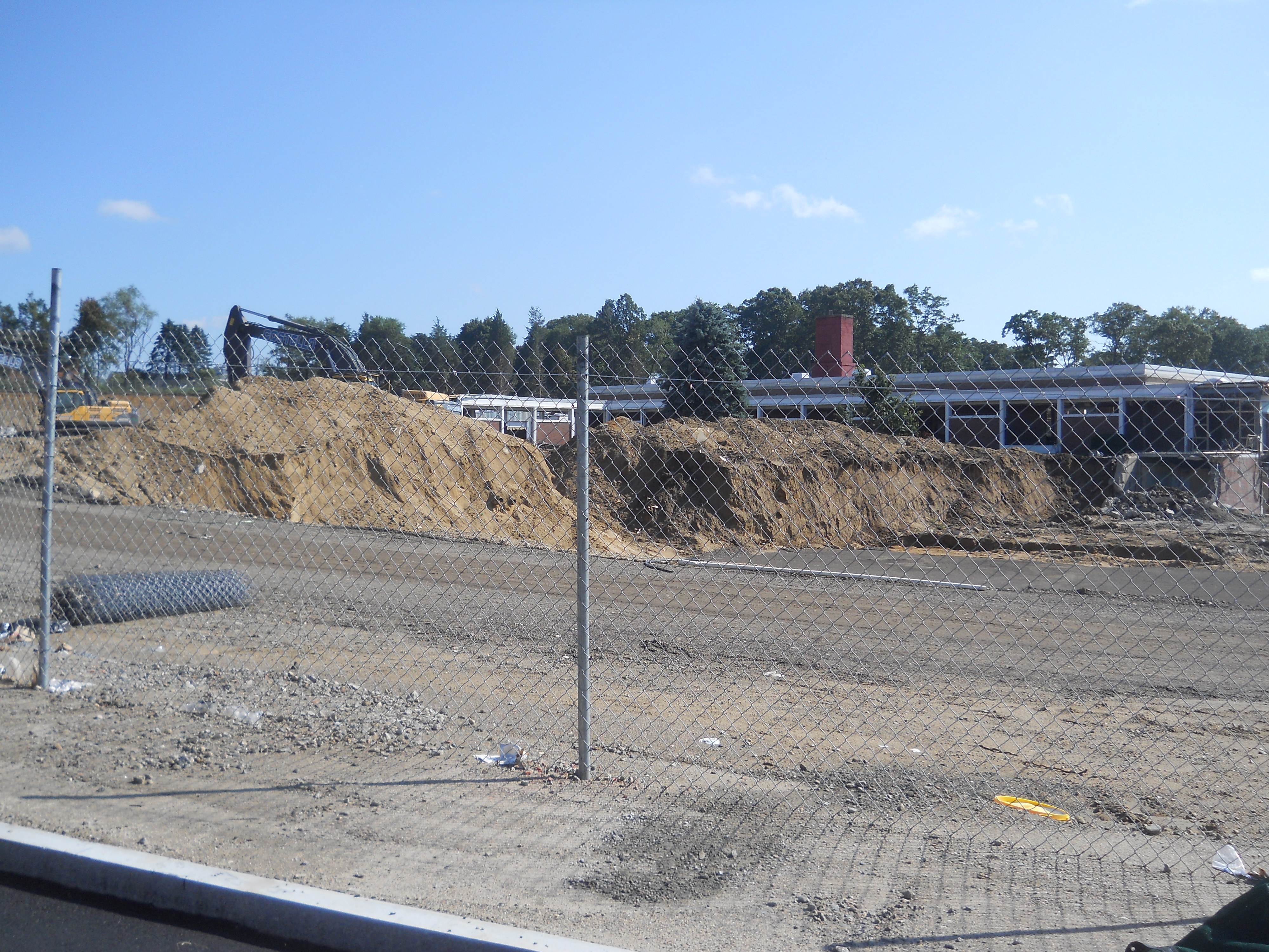 Demolition of the former school building will continue as school begins. Additional athletic facilities and parking will be constructed in the location of the previous school.