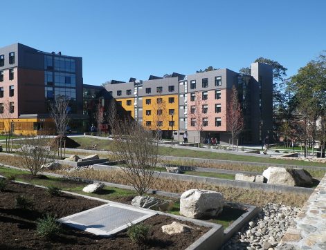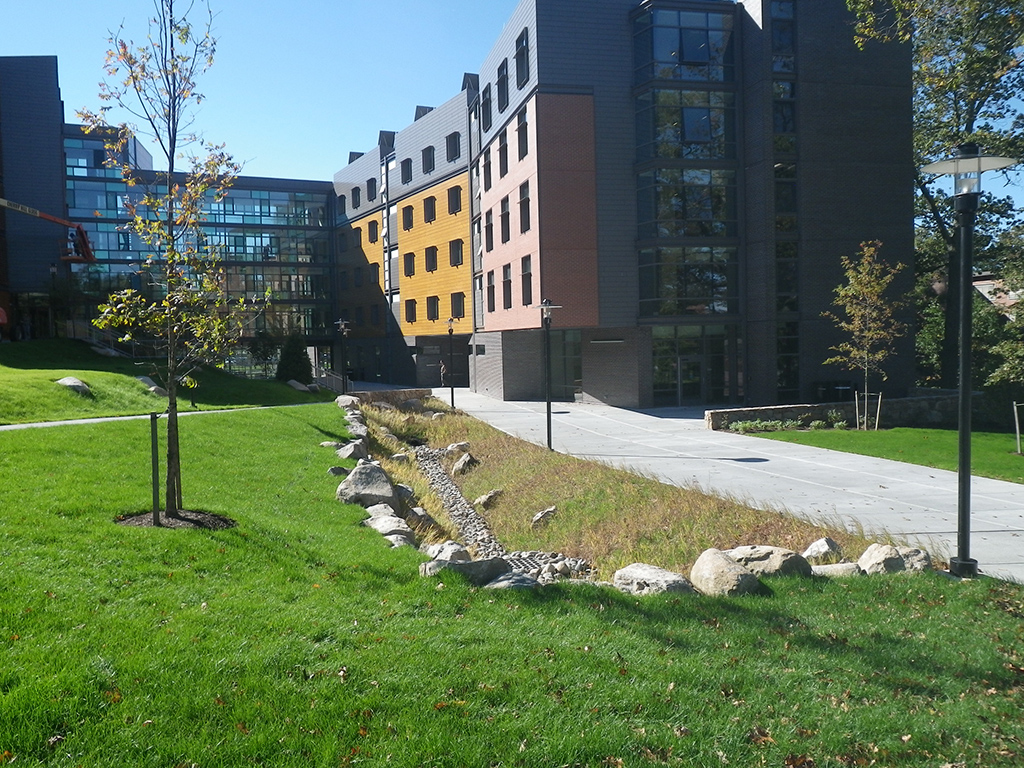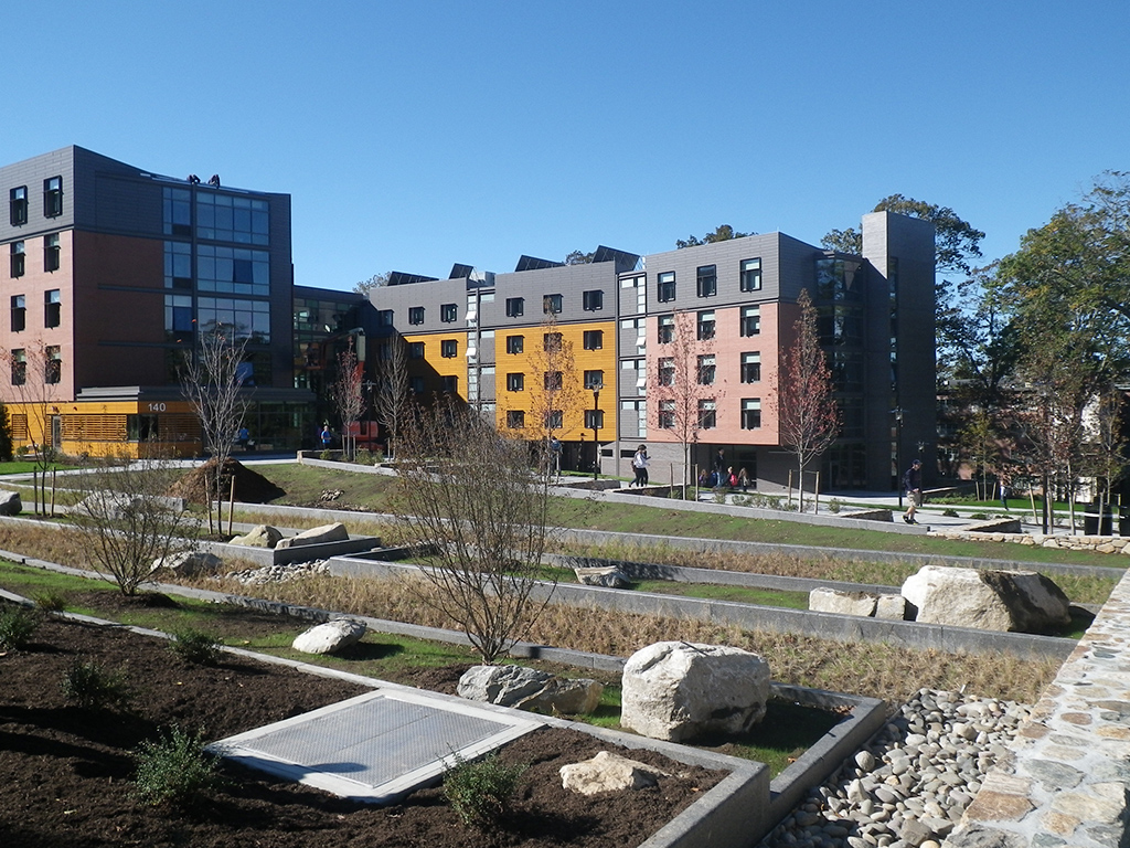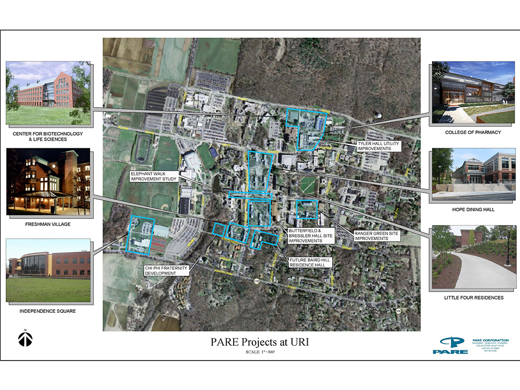 The Princeton Review recently recognized the University of Rhode Island as the greenest college in the State for the fourth consecutive year. Among the factors elevating URI above its in-State peers are several LEED-certified buildings recently constructed on campus. PARE has played a major role on all of these projects, including the $60 million, 140,000-S.F. LEED Gold Center for Biotechnology and Life Sciences and the $22 million, 43,000-SF LEED Silver Hope Commons Dining Hall. The new $44 million, 429-bed Hillside Residence Hall was completed in 2012 and is currently pursuing LEED Gold certification, while the $75 million, 145,000-S.F. College of Pharmacy was constructed to LEED standards and completed earlier this year.