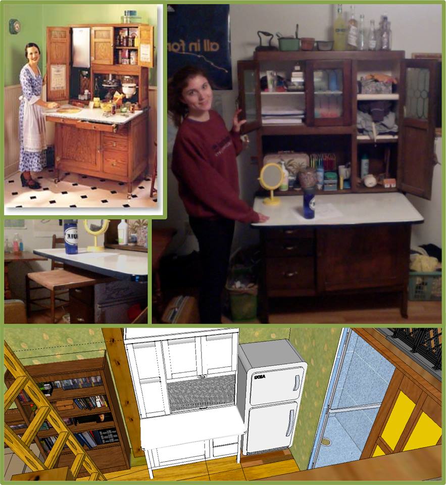 Elecricity will be provided through rooftop solar panels, and an efficient propane stove will heat the home for $30/month in the dead of a New England winter. All building materials will be sourced within 200 miles of the construction site, and each mile will be logged and each material traced to its source. Secondhand or salvaged items will be used wherever possible – including beams from dismantled barns in Central Massachusetts, and a space-saving “Hoosier Cabinet” from the 1920’s, found on Craigslist.