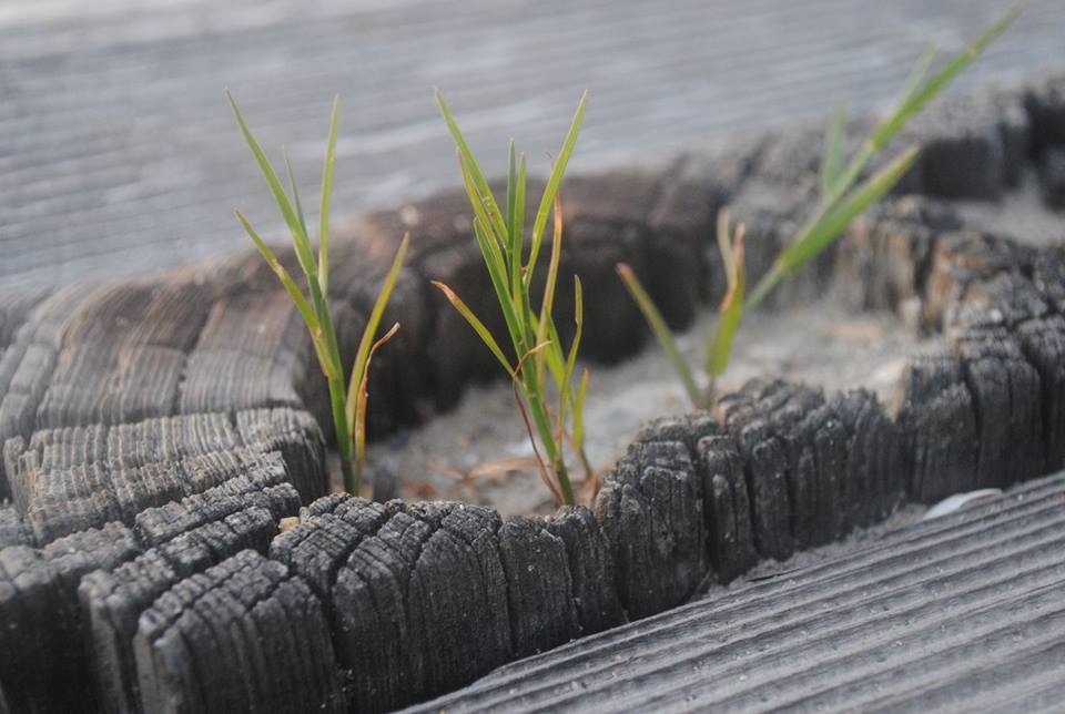 A sign that creating a sustainable community is easier than you think is observed in “Sprouting Boardwalk” photographed at Goddard Memorial State Park in Warwick, RI.  Mother Nature leaves hints of innovation throughout our daily lives; it is just a matter of discovering these hidden elements.  An organic planter lines the boardwalk in a decaying wooden structural element filled with wind-blown sand and just the right mixture of light and nutrients to support these budding spires of grass.