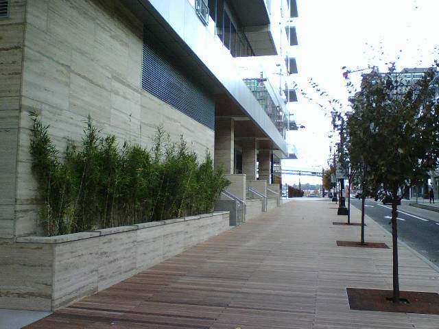 In Portland Oregon you will find a unique experience, a wooden sidewalk that spans four downtown blocks connecting Jamison Square Park and Tanner Springs Park in Portland’s Pearl District.  The wooden walkway and parks were planned as a way to reconnect this part of downtown Portland to the Willamette River.  The parks and surrounding area within the Pearl District have many sustainable design elements to enjoy.  Besides utilizing wood as a renewable resource material for the walkway, there is a fountain that simulates a shallow tidal pool, and the recreation of a natural wetland and pond in an urban setting.