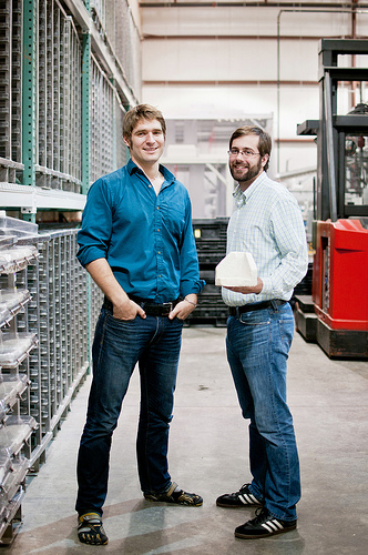 Eben Bayer also recognizes the need to find better solutions for our waste. While attending Rensselaer Polytechnic Institute, Eben and his classmate Gavin McIntyre invented an alternative use of fungi that produces rigid materials. This material is based on mycelium, which is defined as “the vegetative part of a fungus, consisting of a mass of branching, threadlike hyphae.” It is a living, growing and self-assembling organism.