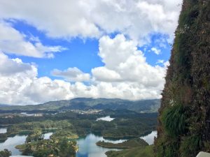 When a hydroelectric complex was built in Guatapé, Colombia in the 1970’s the landscape changed radically from agricultural fields to a lakes region made up of hundreds of islands. This photo shows how the people and ecosystem of Guatapé adapted to this man-made flooding.