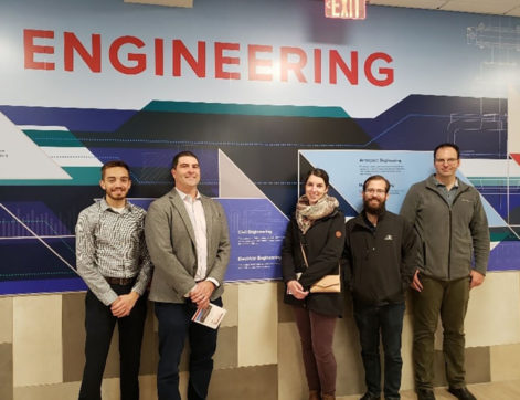 Congratulations to the East Providence School District & the project team on the opening of the new East Providence High School. This $189.5-million, four-story, 304,000-SF building is a true 21st-century educational facility! Pare provided Structural, Site/Civil, Environmental, & Traffic Engineering for the project. In addition to local and state permitting, Pare prepared early sitework and structural packages to facilitate the accelerated construction schedule. The first package was prepared within four months of beginning the project. It seemed fitting to take this photo of representatives of the Pare team in front of the school’s engineering classrooms!