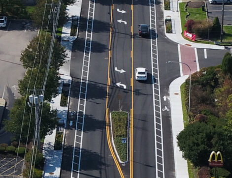 Pare’s second ACEC-RI Engineering Excellence Award project was Old Tower Hill Road (Wakefield, RI), which won a 2nd Place Blue Ribbon Hope Award. Using ‘Complete Streets’ elements, Pare’s design significantly improved the circulation and safety of vehicles, bicyclists and pedestrians in this busy commercial district. The stormwater treatment design, which includes 18 bioretention curb inlet planters, provides a low-impact development technique for treatment and infiltration at the source within limited right-of-way conditions, while beautifying a business district with much desired landscaping. The project also won a 2022 Stormy Award from the New England Water Works Association!