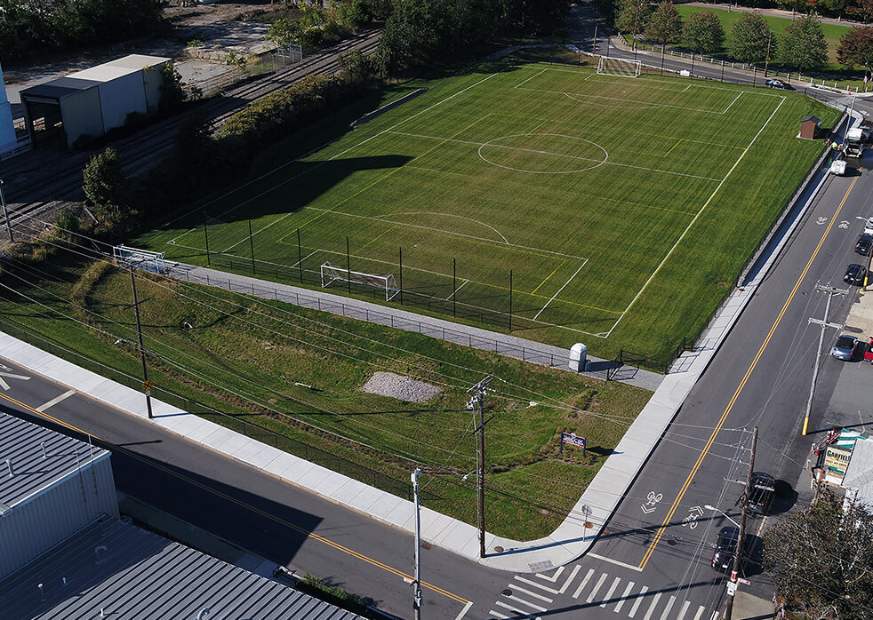 Pare performed design and construction-phase services for a GSI Demonstration project in Central Falls to demonstrate how effective GSI installations may be at reducing CSOs at other sites in a dense, urban setting. It was centered around an abandoned former commercial property that the City desired to redevelop into a new park and natural grass soccer field. Soil sampling conducted by Pare identified contaminated soils and delineated the extent of onsite contamination.