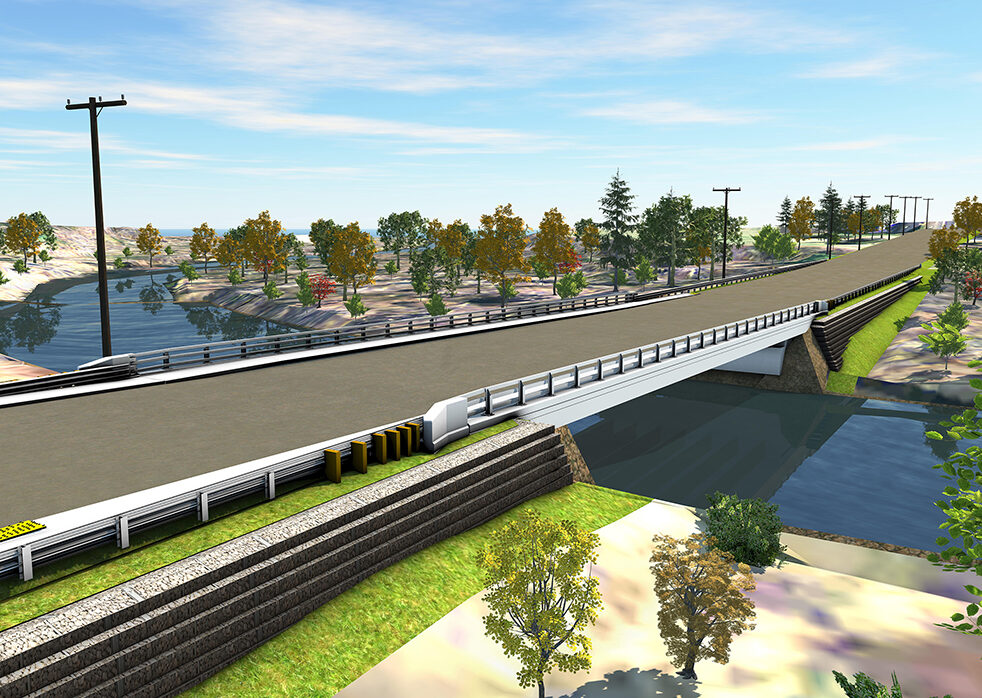 Pare provided professional engineering services for the complete replacement of the U.S. Route 20 bridge over the Quaboag River. Pare performed a two-dimensional Hydraulic and Hydrologic (H&H) analysis of a considerable length of the Quaboag river to determine the floodwater effects on the bridge, the scour potential, and verify that the established flood elevations remained unchanged after construction. The previous two-span bridge was replaced by a single 125-foot span galvanized plate girder bridge with a reinforced concrete deck slab. New ADA-compliant sidewalks were included on both sides of the bridge, and the 8-foot wide shoulders accommodate bicycle users. The new concrete abutments were shifted approximately 15 feet to better suit the natural river alignment. The concrete center pier was demolished to remove the obstruction from the waterway. Mechanically Stabilized Earth (MSE) walls with stone-filled gabion basket facing were used to prevent permanent wetland impacts and to avoid the negative visual impacts that tall and long conventional concrete walls have.